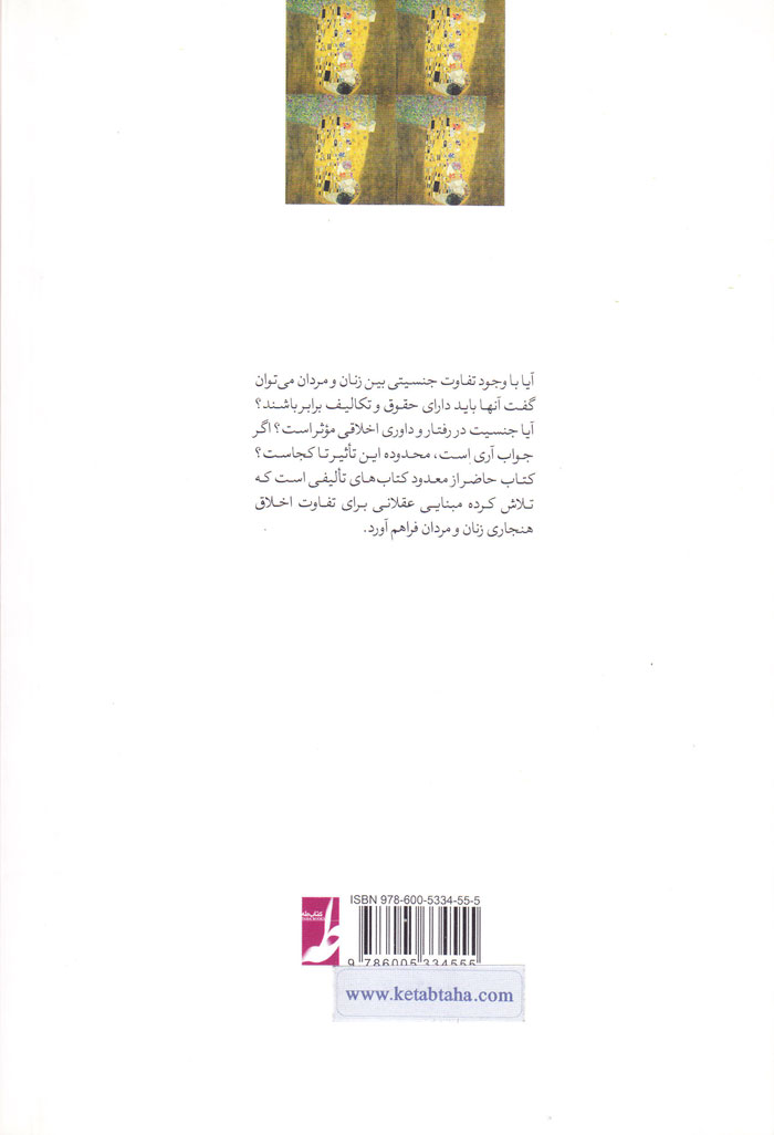 کتاب «اخلاق، جنسیت و زنان» ادعا دارد که تفاوتهای جنسیتی میان مردان و زنان دلیل موجهی است که اخلاق هنجاریشان را متفات کند و مصادیق آن را در ساحتهای مختلف اخلاقی ذکر میکند. نویسنده سعی دارد از متون دینی برای تقویت دعاوی خود استفاده کند.