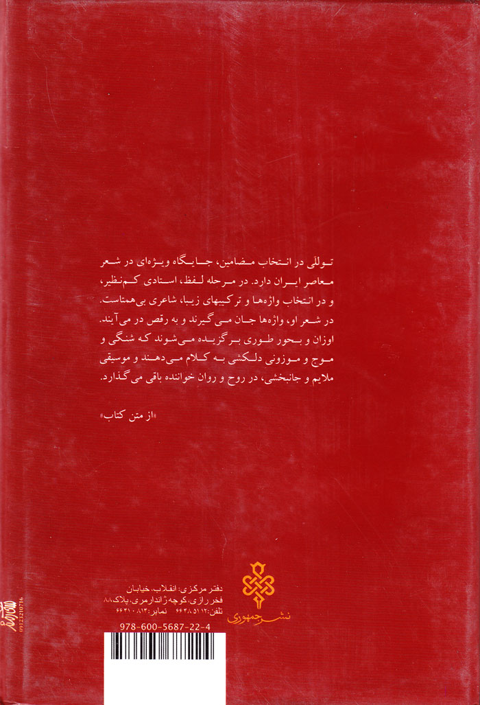 قسمت پایانی این کتاب به قالبهای دیگری که این شاعر معاصر در آنها به سخنسرایی پرداخته است و اشعاری مثل علی و مسیح، فال، گفتگویی با حافظ، قطعه، مبادا (در مصائب حضرت زهرا) و ... آمده است.