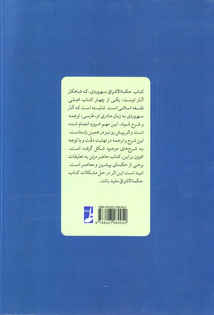 کتاب «حکمه الاشراق» سهروردی، که شاهکار آثار اوست، یکی از چهار کتاب اصلی فلسفه اسلامی است. شایسته است که آثار سهروردی به زبان مادری او، فارسی، ترجمه و شرح شوند. این مهم امروزه انجام شده است و اثر پیش رو نیز در همین راستاست.